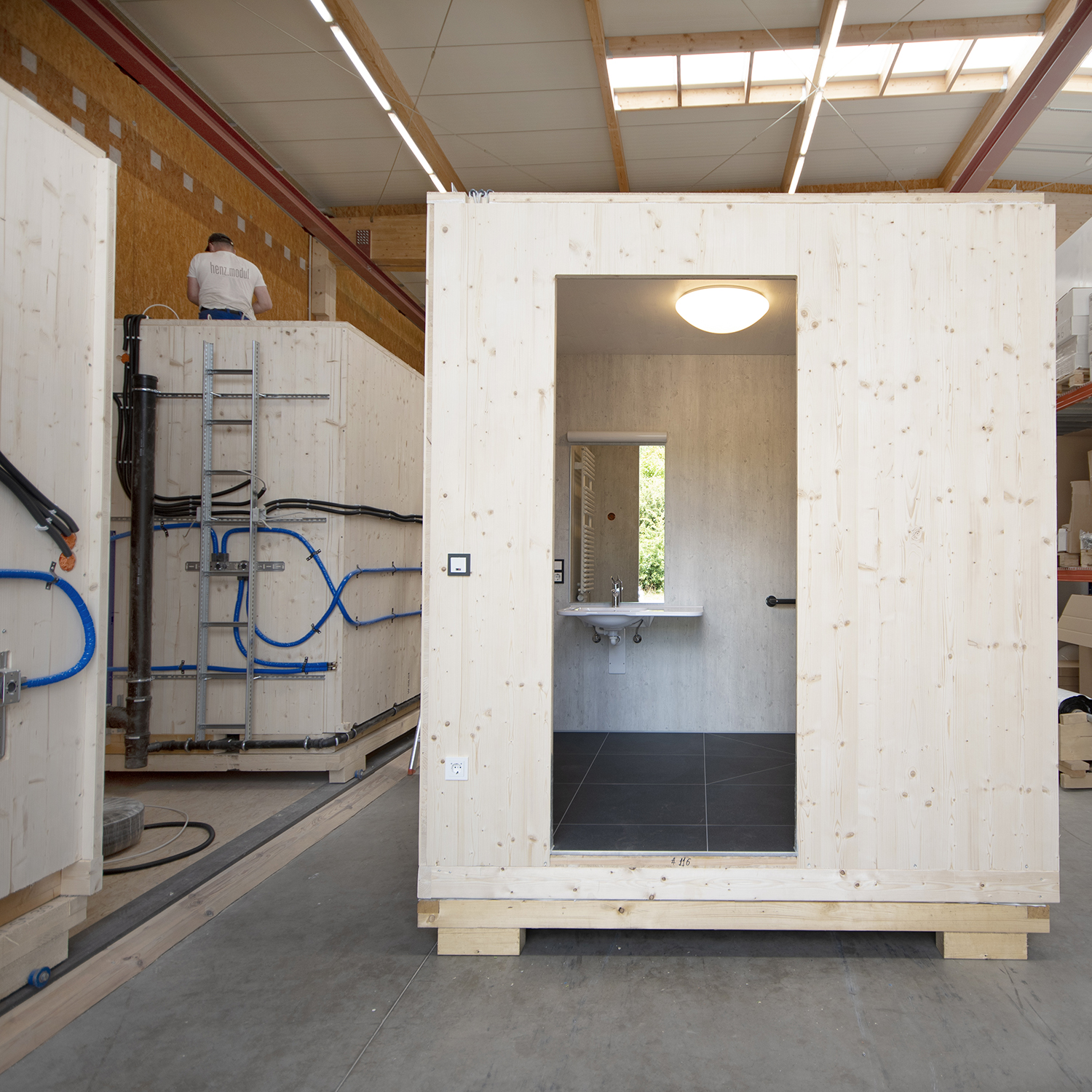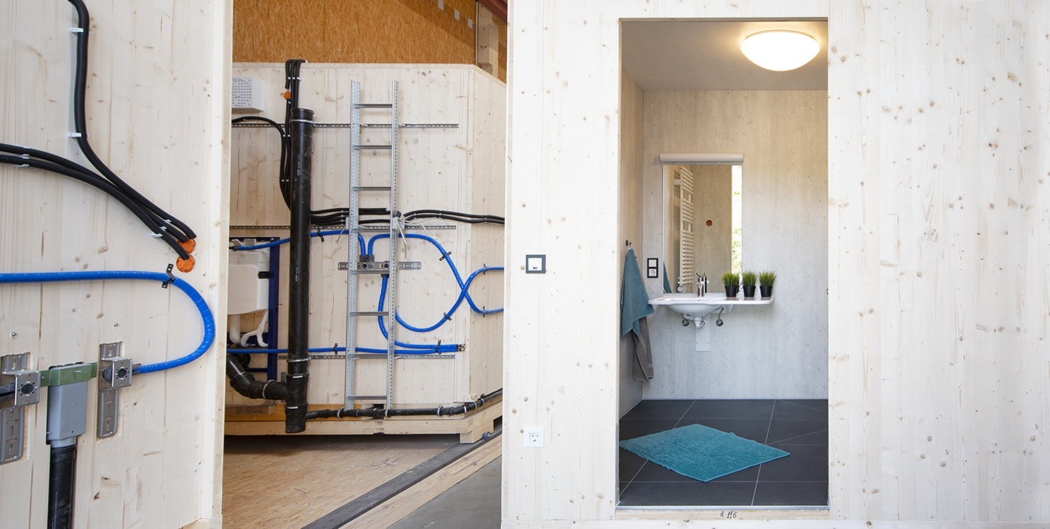 Die 66 Raum-in-Raum-Badmodule wurden in der Produktion von henz.modul gefertigt und im Plug & Play System installiert.