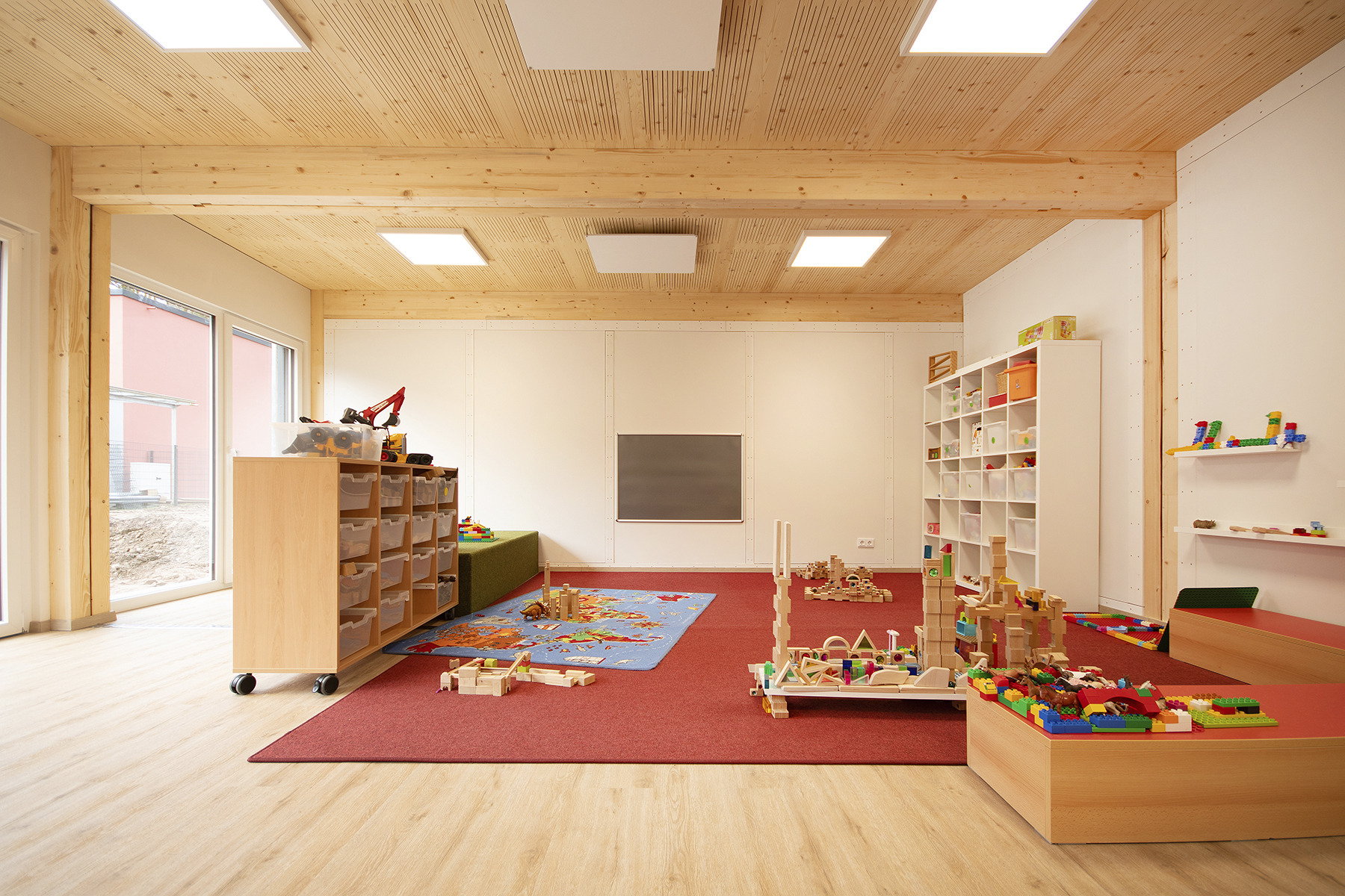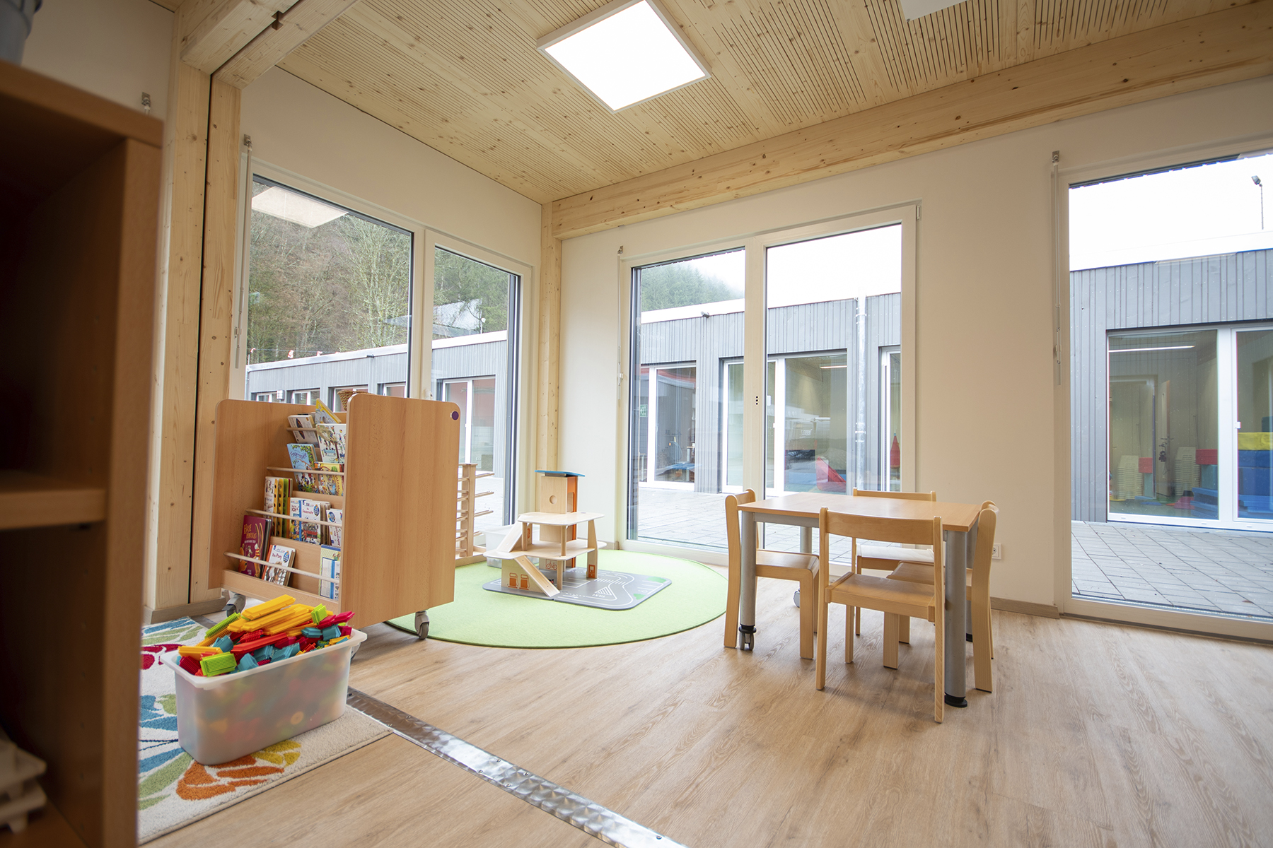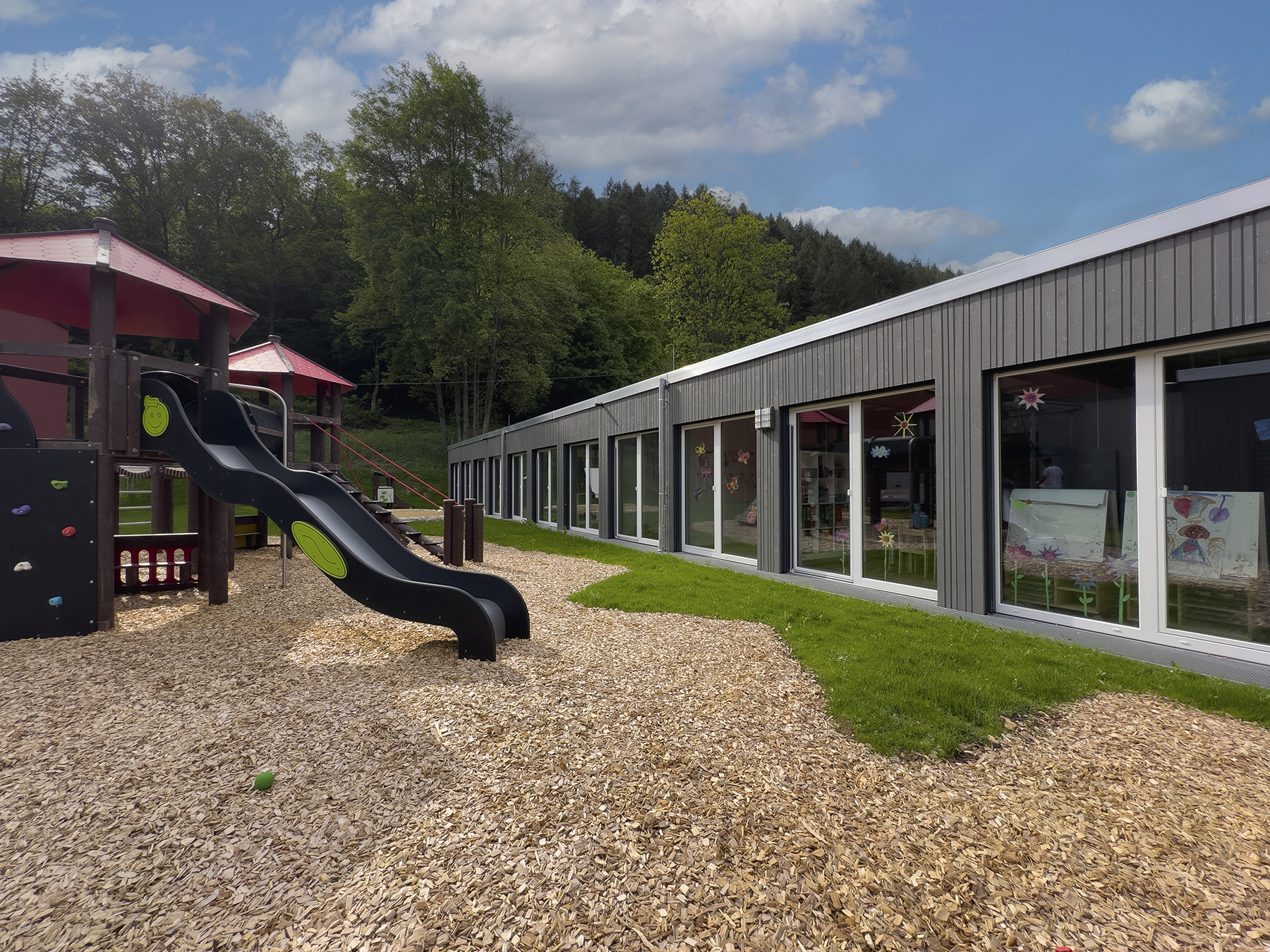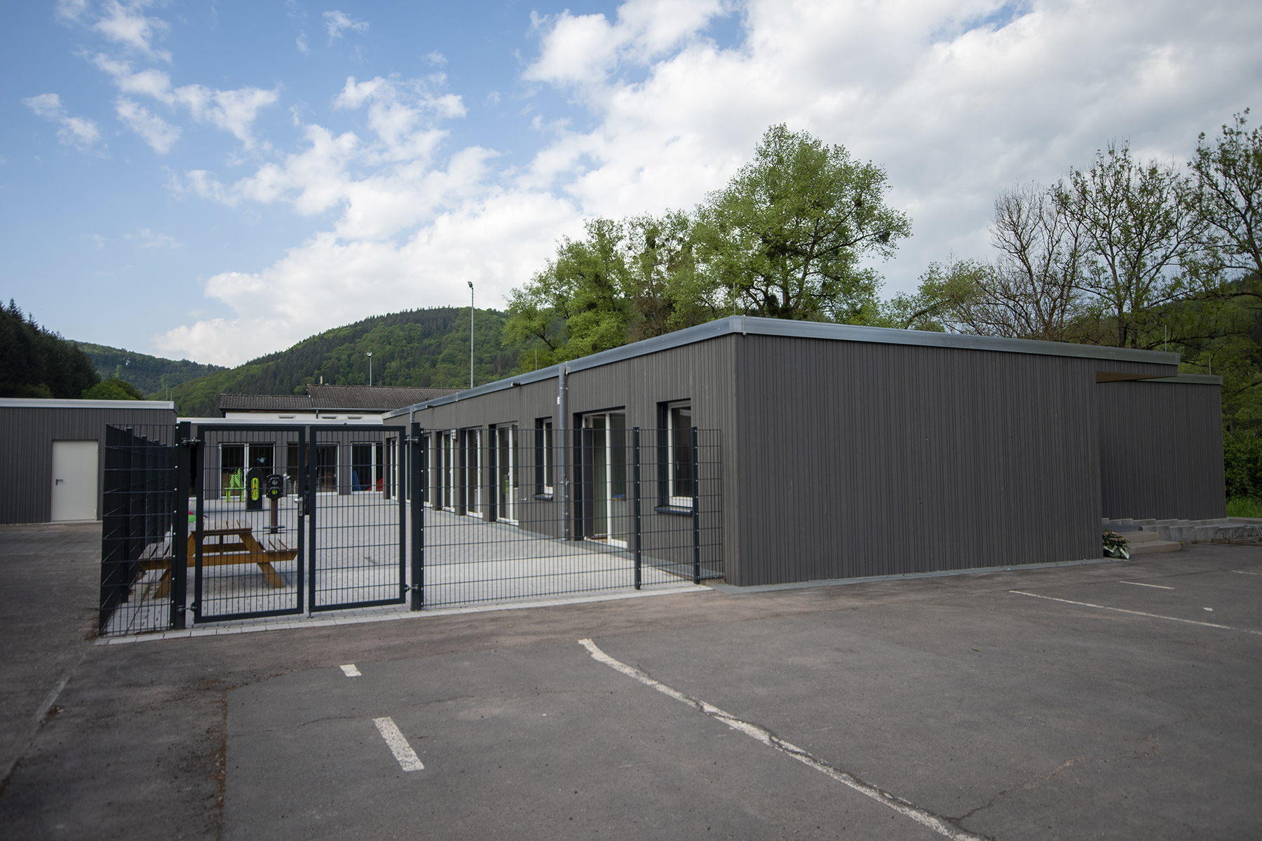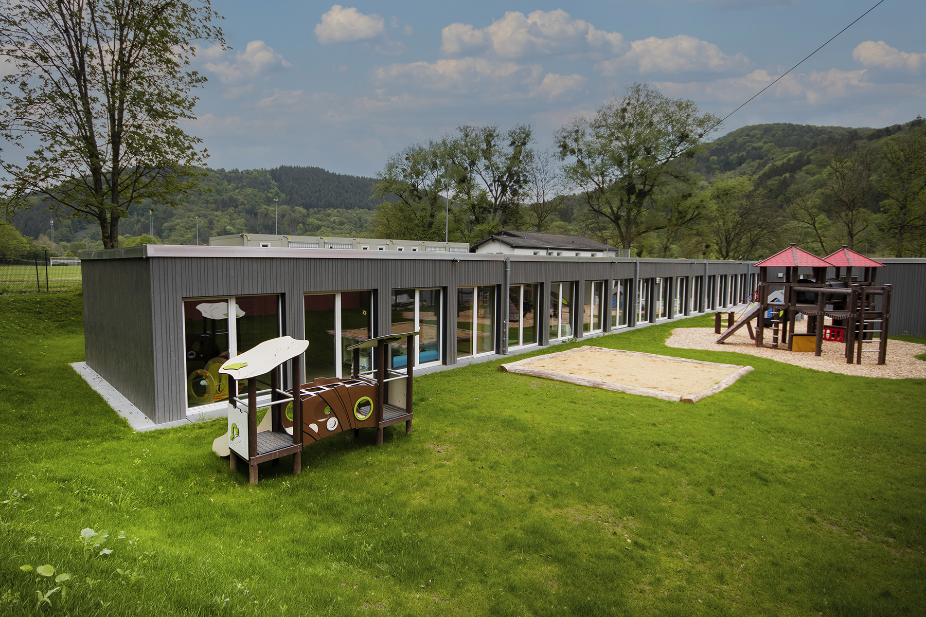 Eine modular aufgebaute Kindertagesstätte wurde in Kordel realisiert. Bestehend aus 45 vorgefertigten Modulen, inklusive Innenausbau und Anschlüssen, bietet sie eine temporäre Lösung bis zur Sanierung der durch die Flutkatastrophe betroffenen Kita.
